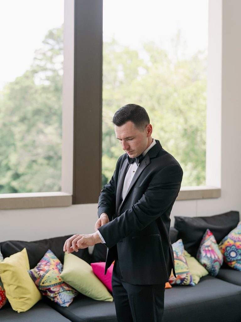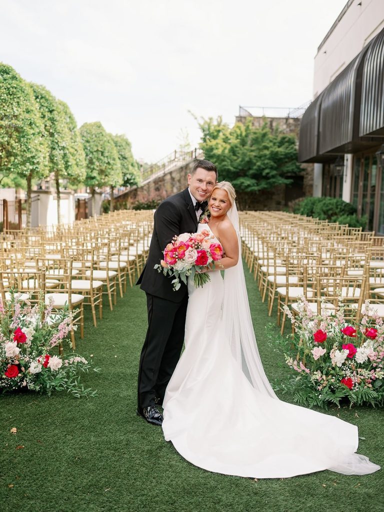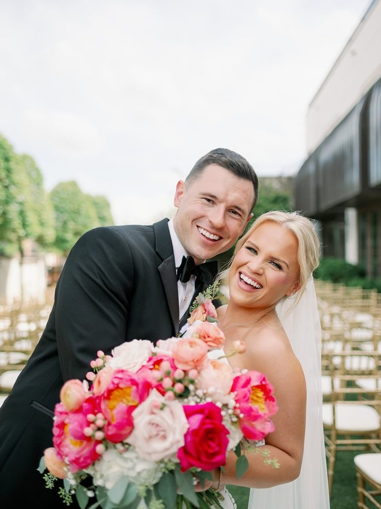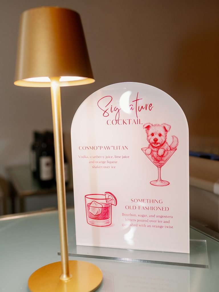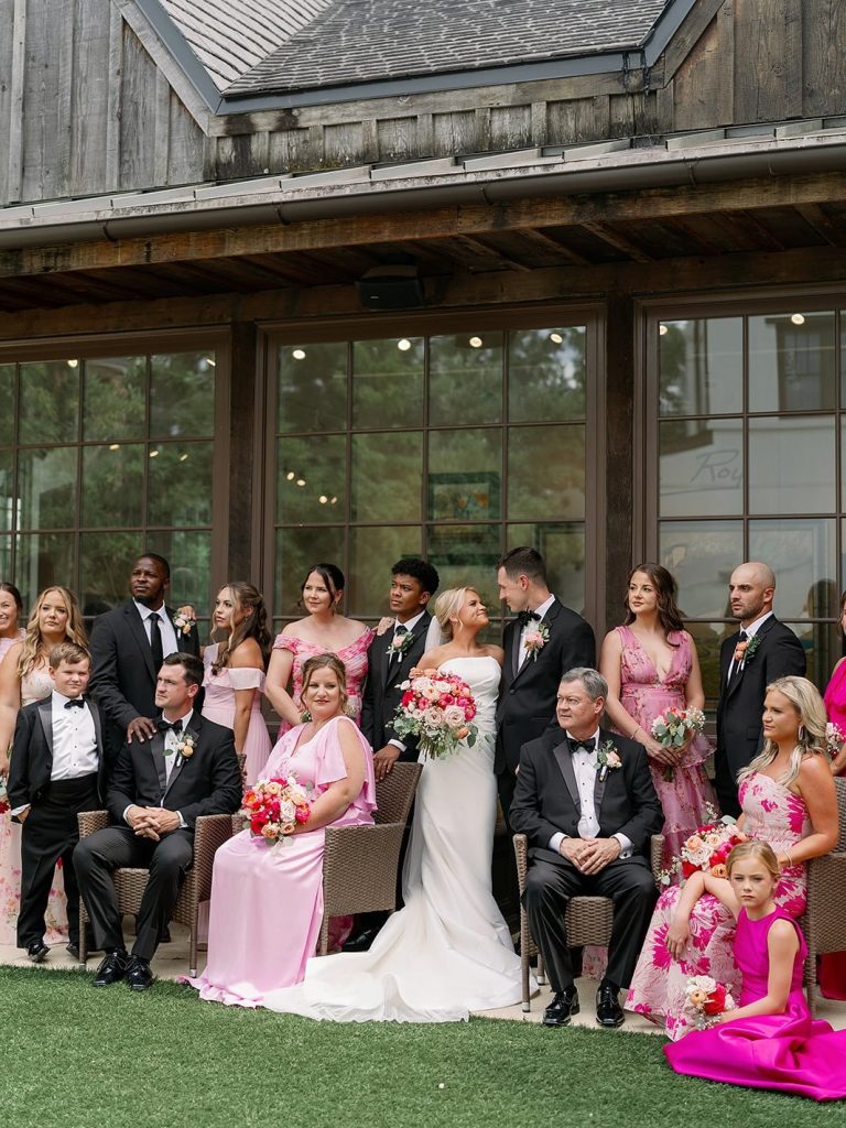 Matti and Dustin’s wedding was garden-glam perfection in every shade of pink. Their ceremony took place outside, surrounded by soft blush blooms and bold hot pink accents that layered the garden with texture, color, and depth. Every floral arrangement, pathway detail, and decorative touch was thoughtfully curated, creating a visual story from the first step down the aisle to the final moments outside. Guests enjoyed signature cocktails — the playful “CosmoPawlitan” and the classic “Something Old Fashioned” — adding a personal and fun element to the celebration.