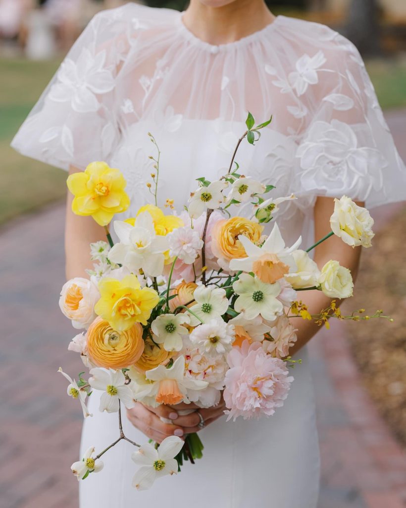 Maggie and Scott’s wedding was a dreamy celebration of soft pastels and floral beauty. Surrounded by lush greenery and delicate blooms, their day felt like stepping into a fairytale meadow. The pastel pinks and greens brought a fresh, feminine vibe to the country club setting, creating a scene that was both elegant and delightfully girly. And that cake moment in the meadow? Absolutely swoon-worthy.