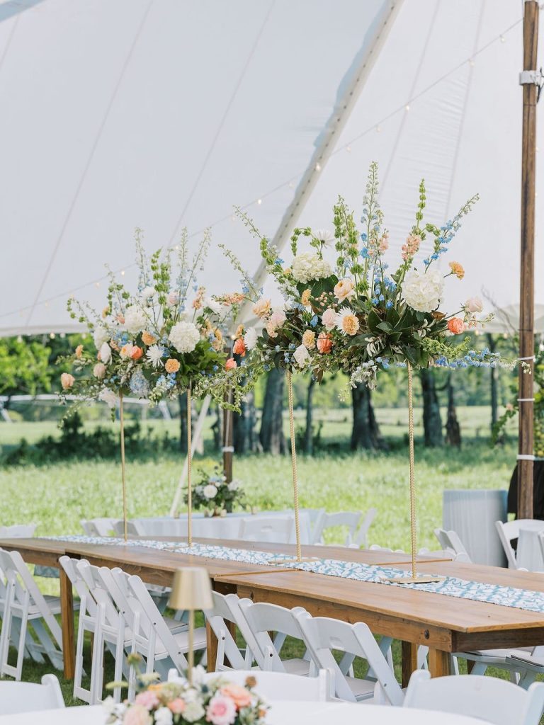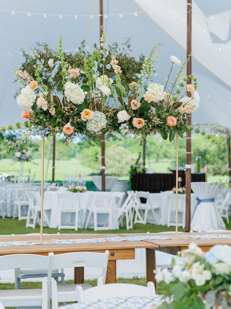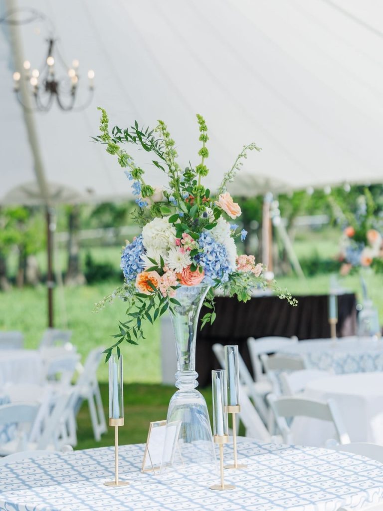 Faith and Chase’s spring wedding was a breath of fresh air, bursting with color and joy from start to finish. Set beneath a clear blue sky, their celebration was filled with beautiful blue and white details accented by vibrant blooms that brought every moment to life. The sailcloth tent reception added a dreamy, airy touch — a perfect backdrop for a day that felt like pure spring magic.