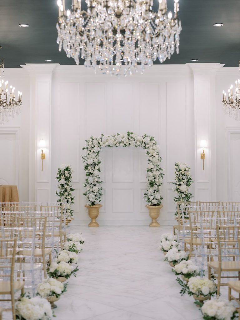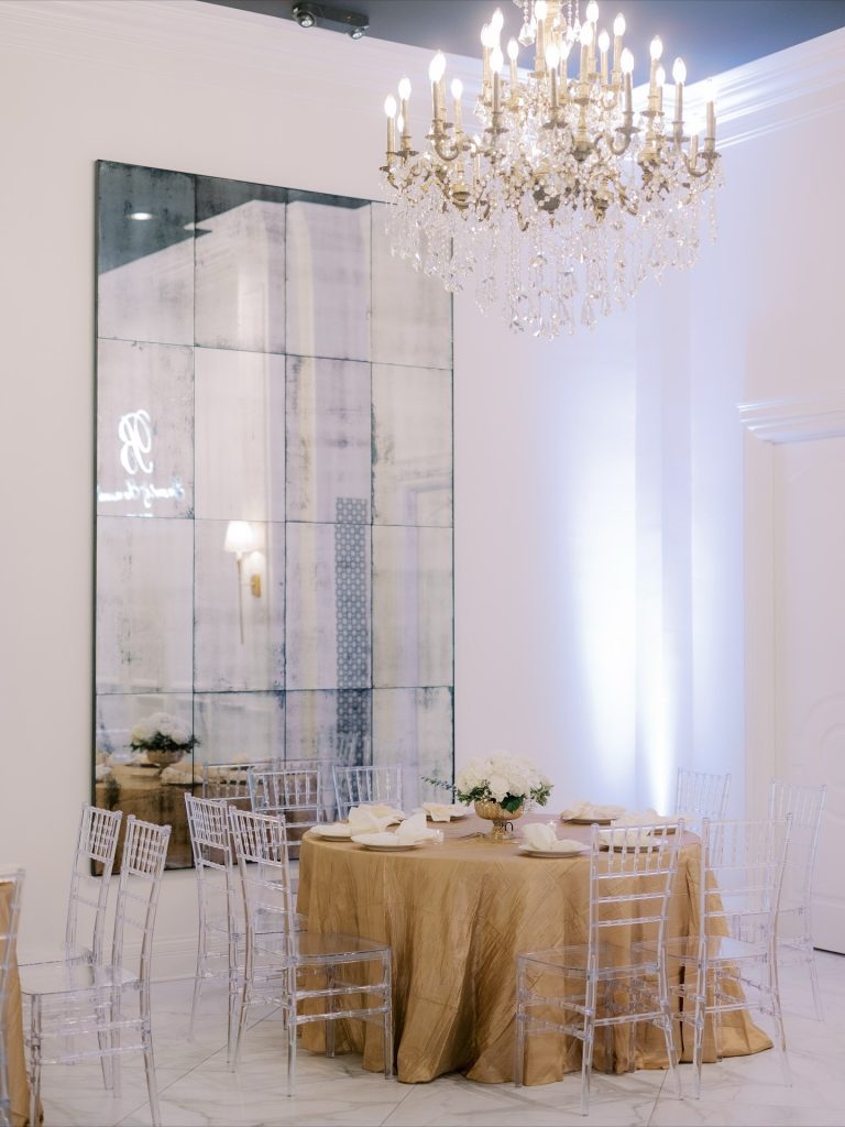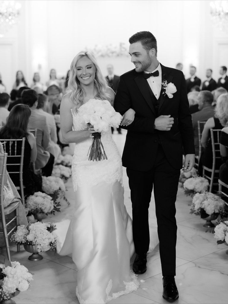 Savannah and Garrett’s wedding was the epitome of classic sophistication. Set against a backdrop of marble floors and mirrored walls, their day shimmered with luxe details—from sparkling chandeliers overhead to lush florals that filled every corner. The blend of white and gold created an atmosphere that was both chic and timeless, leaving guests utterly captivated by the elegance at every turn.