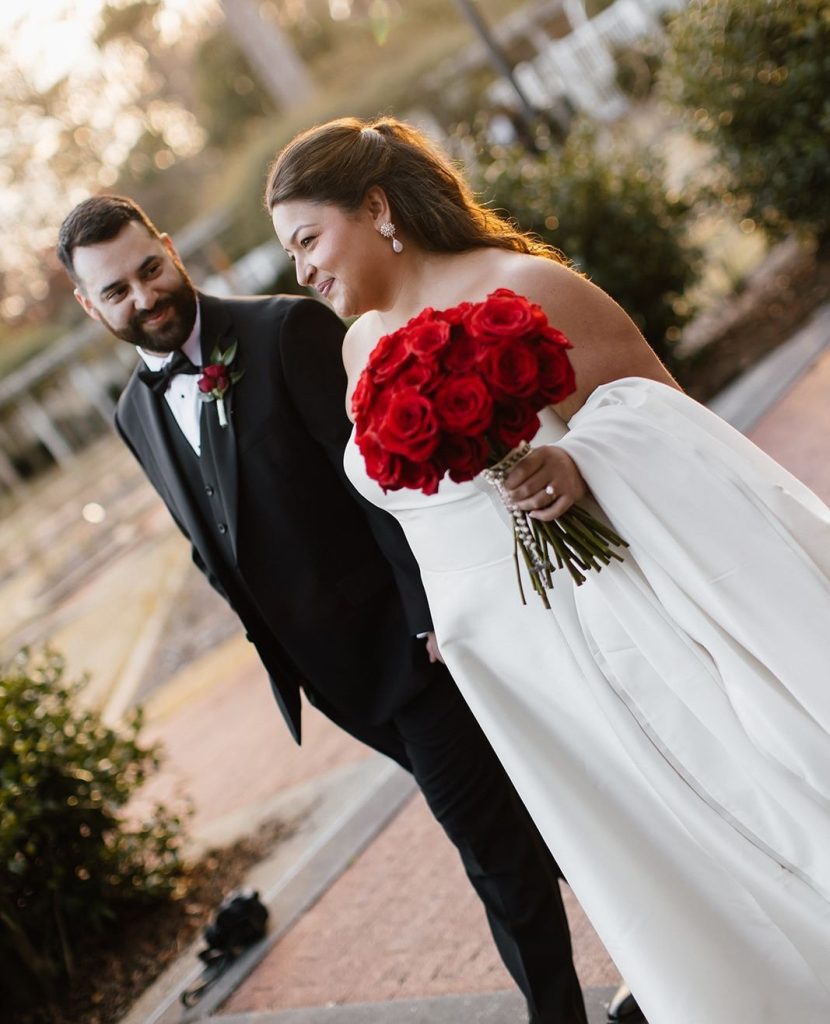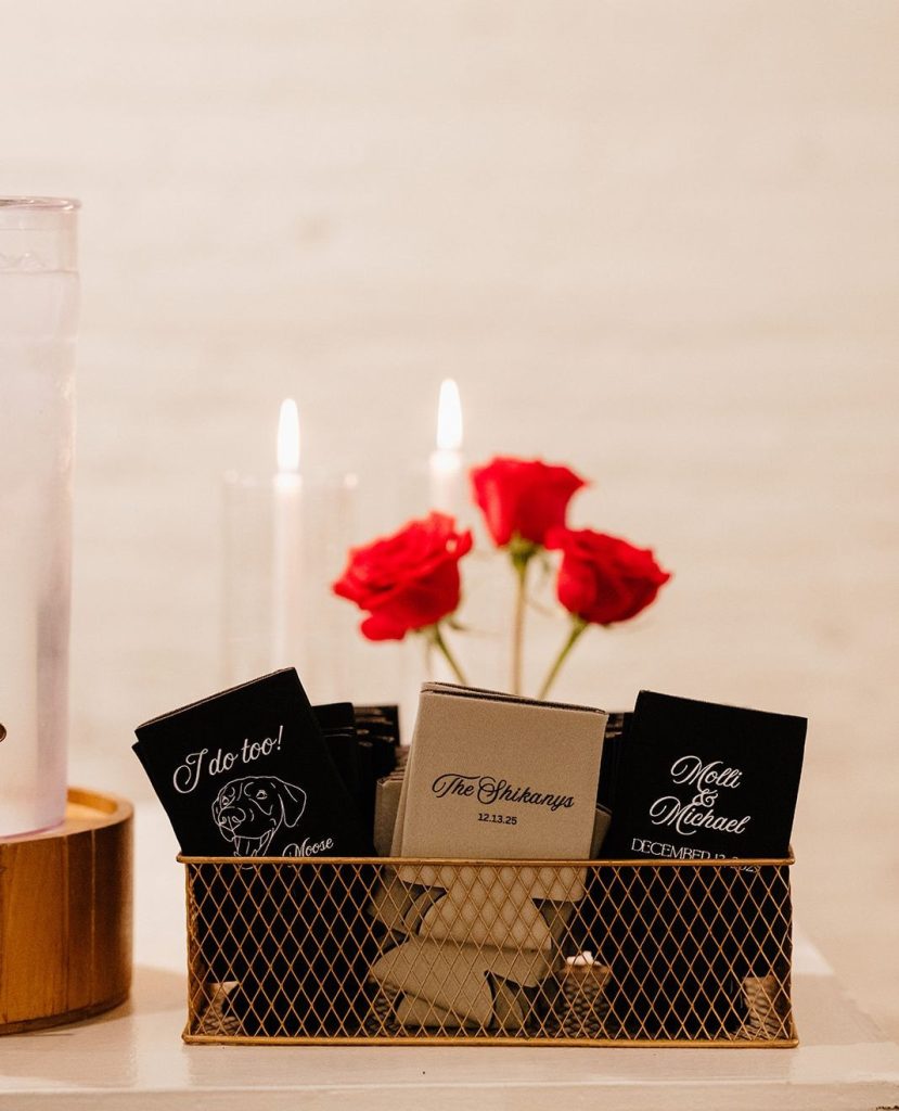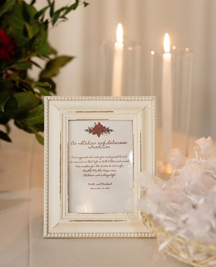 Molli & Michael’s winter wedding was classic and full of heart, from Michael wearing his late grandfather’s wedding band and watch to Molli walking down the aisle in her grandmother’s lace cathedral veil. Every detail was warm and rich with tradition — red and white florals, soft lighting, and Italian & Lebanese touches, like the Tarantella and almond favors for health, wealth, and happiness.