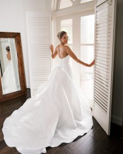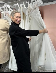 Each gown that makes it onto their racks is chosen with intention. Cathy attends market twice a year but waits until returning home to make final selections — printing photos, comparing styles, and asking what their brides are truly asking for. “It’s all about balance,” she says. “What do we need, what don’t we have, and what will make our brides feel incredible?”