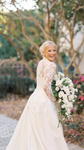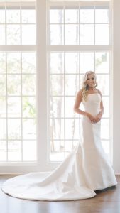 While bridal trends ebb and flow, The White Room keeps an eye on what works for Birmingham brides. Laces and mikados are current favorites, while styles like the basque waist — one of this year’s biggest trends — are beginning to catch on locally. Cathy’s advice? “You can always go for that modern look, but add touches of tradition — like a lace veil — to keep it timeless.”