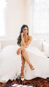 Appointments at The White Room are as thoughtful as the gowns themselves. Brides can book online and bring a small group of loved ones for a personalized fitting experience. Each appointment begins with a conversation — about the wedding, the vision, the vibe — before Cathy and her team pull gowns tailored to that story. Saturdays often come with a side of mimosas, making the experience even more celebratory.