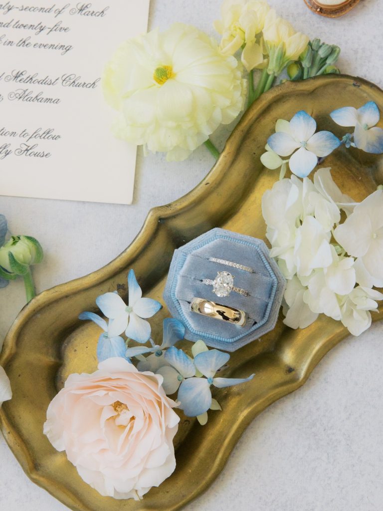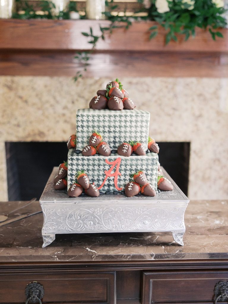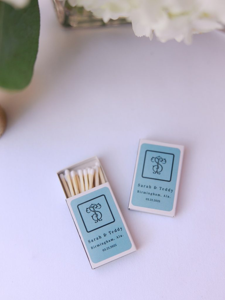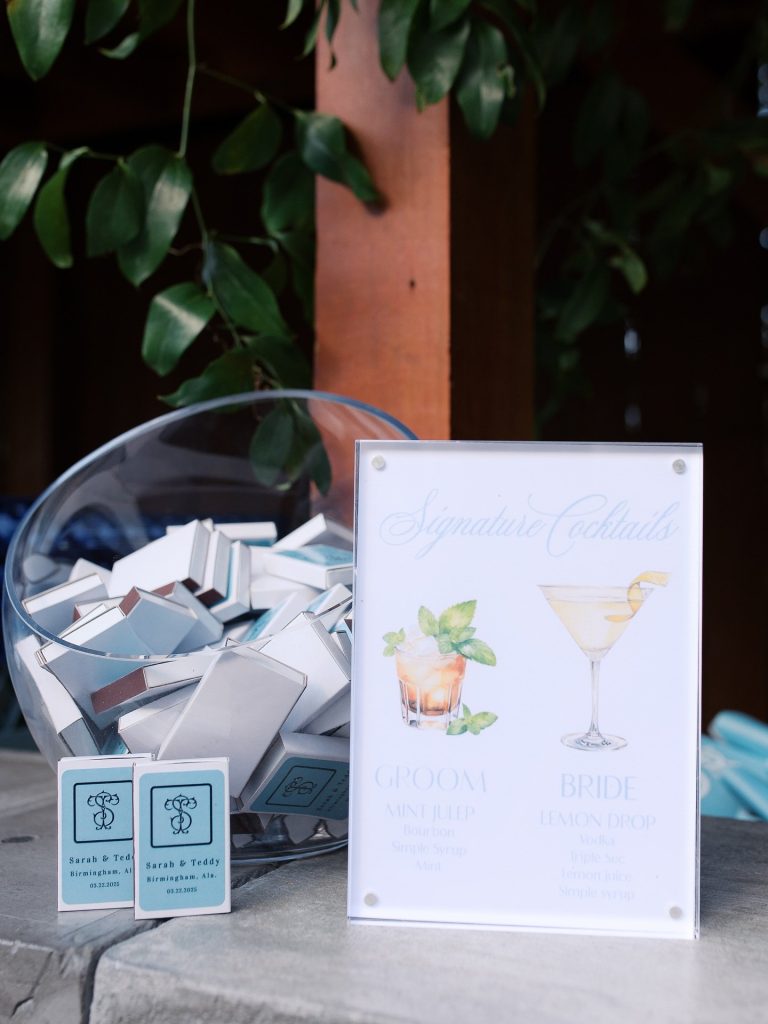 Classic elegance met pure joy in Sarah and Teddy’s dreamy spring celebration. Their spring color palette created a soft, romantic backdrop for every detail, from the heartfelt ceremony to the lively reception that followed. Guests enjoyed the couple’s signature cocktails — a Lemon Drop for her and a Mint Julep for him — while chic matchbox favors offered the sweetest keepsake. And of course, the groom’s houndstooth cake was a stylish nod to Alabama that tied the evening together in the most perfect way.