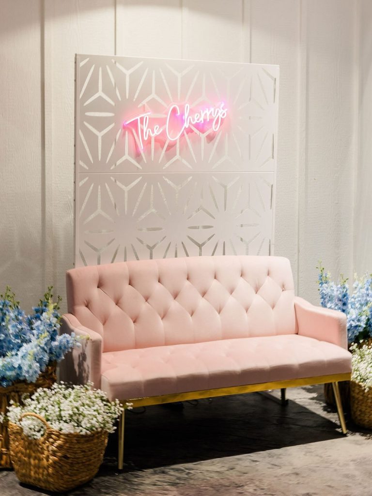 Addison and Austin Cherry’s wedding was a delightful celebration filled with sweet, thoughtful touches that made the day truly special. From the soft pink bridesmaid dresses to pastel blooms that added gentle pops of color, every detail was carefully chosen to reflect their style and love story. Their cozy lounge setup, complete with their last name glowing in lights, was the perfect cherry on top of an unforgettable day.