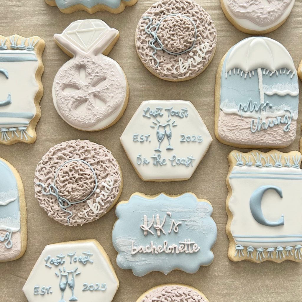 Nancy Jane’s Bakes is where custom cookies meet unforgettable celebrations. Specializing in soft vanilla sugar cookies topped with melt-in-your-mouth royal icing, this Birmingham-based cottage bakery creates designs that are just as stunning as they are delicious. From elegant bridal teas and engagement parties to bachelorette weekends and rehearsal dinners, these cookies add a sweet, personalized touch to every step of the wedding journey.