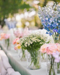 Kathryn + Avery’s Southern-chic celebration was a perfect mix of timeless elegance and playful personality. From floating blue-and-white hydrangea installations over the tent and bar to a checkered black-and-white dance floor, every detail was thoughtfully curated to bring their vision to life. Guests loved the ring-for-a-margarita wall featuring the couple’s monogram, while personal touches like their pup Ollie joining in portraits and an Auburn-inspired groom’s cake added warmth and fun throughout the day.