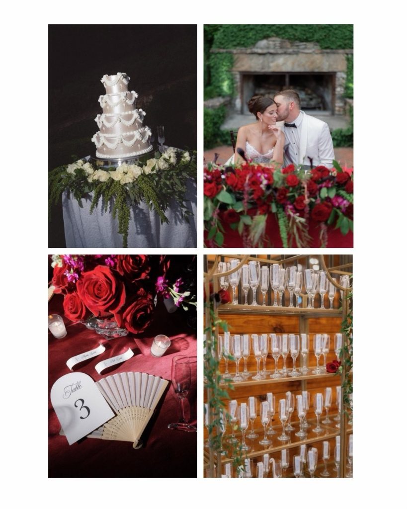 Madisyn + John’s wedding at Windwood Equestrian was a striking celebration of timeless design and intentional detail. A classic palette of white, red, and black set the foundation for the day, layered with crisp linens, dramatic black accents, and lush arrangements of red roses that brought depth and romance to every space.
