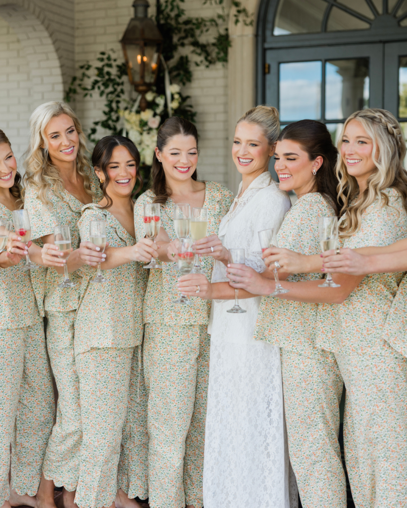 Grace & William’s wedding felt both magical and deeply personal. The ladies started with brunch in matching PJs (and a vintage lace robe for the bride, of course!), sunlit windows, and laughter, while the guys enjoyed football and hamburgers nearby.