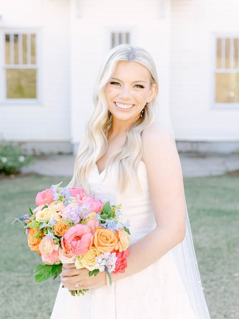 Caroline and Andrew’s wedding day was a beautiful reflection of their sweet, genuine personalities—soft-spoken yet overflowing with joy. The celebration blended timeless elegance with vibrant, bold touches that made the day unmistakably theirs. From Caroline’s classic bridal style to the lively mix of colorful bridesmaid dresses and bold fall florals, every detail was thoughtfully chosen to break tradition and bring fresh energy to the season.