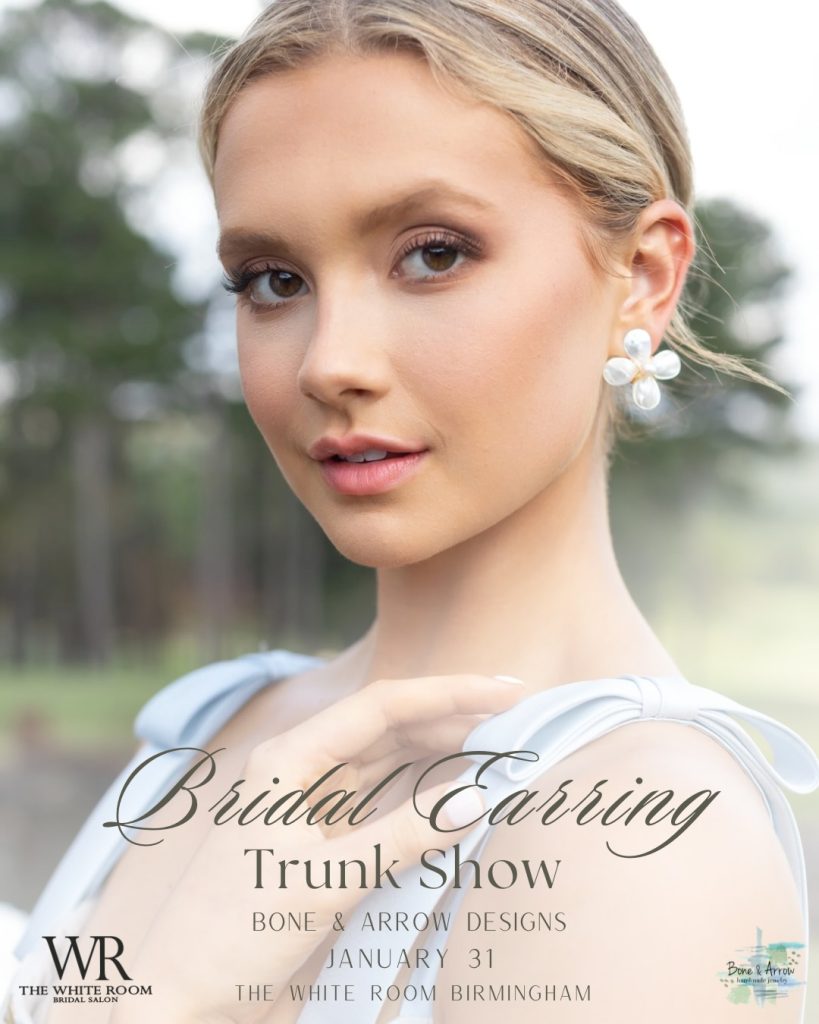 Bridal Earring Trunk Show at The White Room Birmingham Join Bone & Arrow Designs and The White Room Birmingham for a bridal earring trunk show on Saturday, January 31. This exclusive event will feature a curated selection of bridal and bridesmaids earrings, along with custom design options perfect for brides, mothers of the bride, and mothers of...